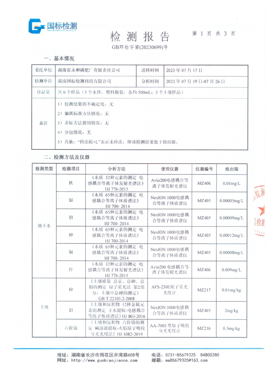 2022年土壤及地下水检测报告